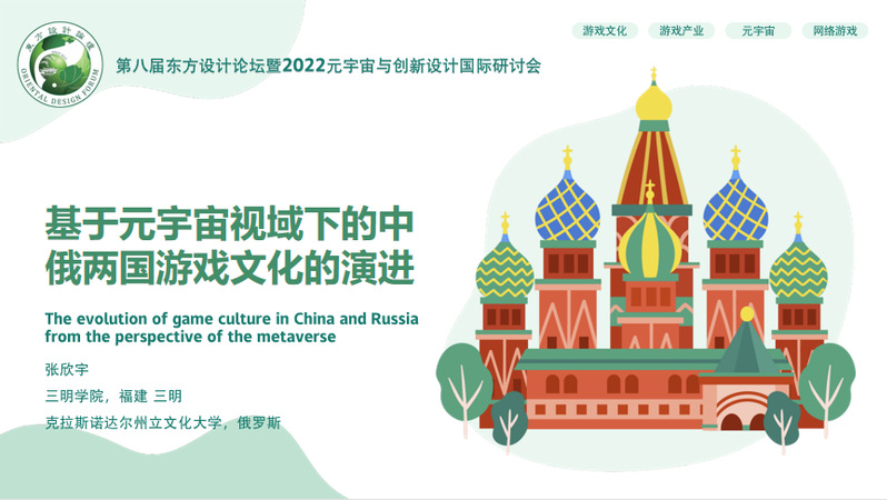 艺术与设计学院动画系副主任张欣宇老师受邀参与此次青年学者论坛,并且在此次论坛中以“基于元宇宙视域下的中俄两国游戏文化的演进”为题进行发言。张老师围绕这“元宇宙”的概念演化进程在业界有一个基本共识,将现实生活中的部分场景在游戏平台上做模拟或创造性建构具有现实身份的人在数字场景中中俄两国相应的社会活动进行论述。
