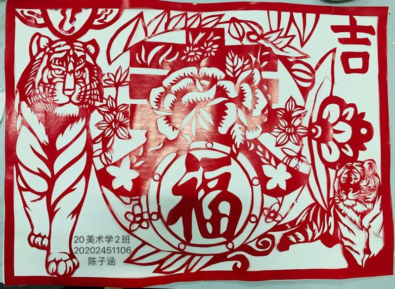 冬风传喜讯,福虎踏歌来,为传承民族文化,感受浓浓的节日气氛,艺术与设计学院举办“2022年红纸描箴语,降福又'易'年”主题活动。艺术与设计学院的学子们通过自己精湛的手工,为全体师生送来新年的美好祝福,当虎年元素与剪纸艺术相结合,将会擦出怎样美丽的火花呢?下面一起来看看吧!
