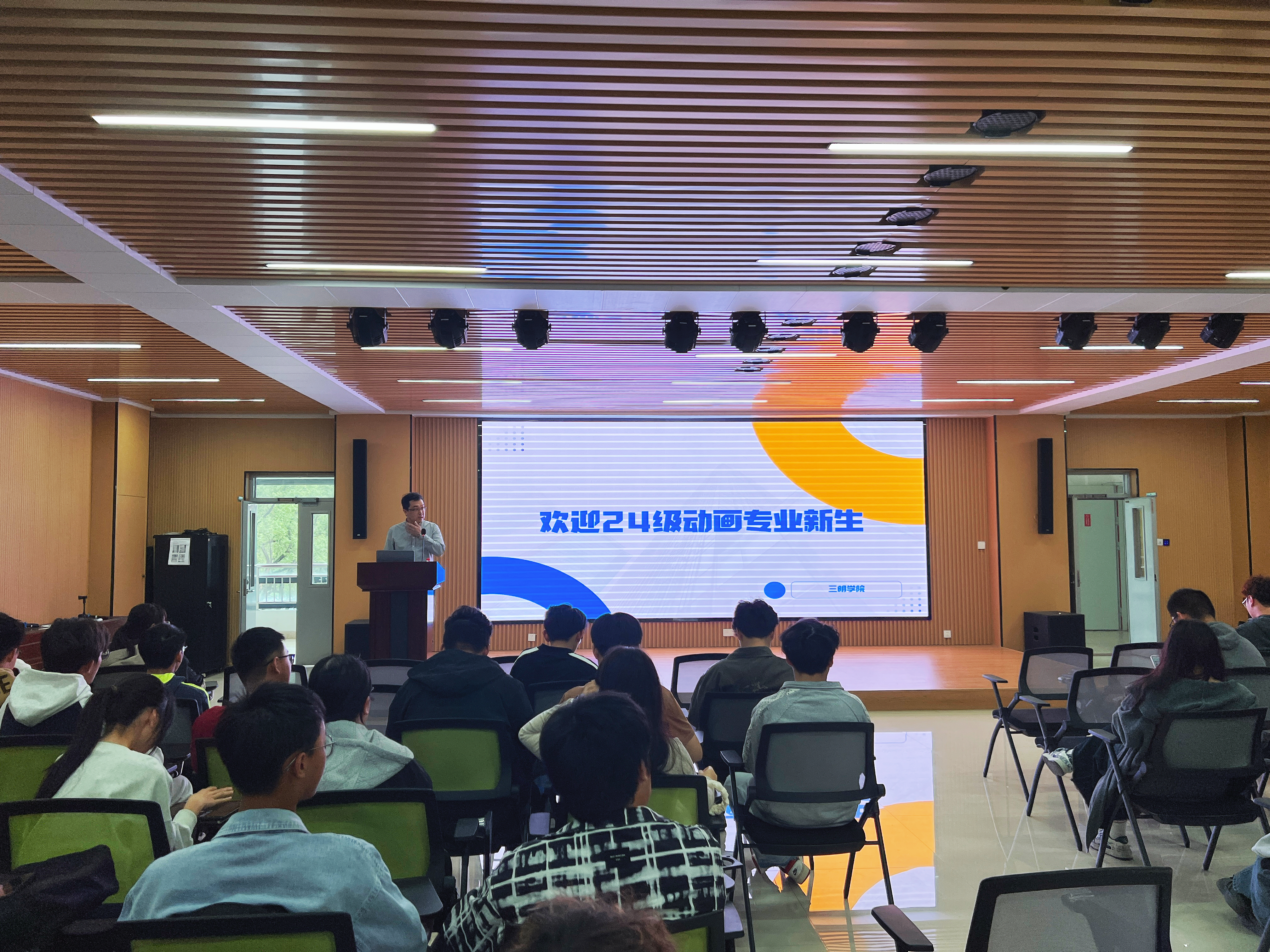 张欣宇副主任向新生表达了最诚挚的欢迎,围绕专业发展历程、专业建设、人才培养、课程体系等内容,向新生详细介绍了动画专业。他鼓励新生要用坚定的理想信念打好自身专业基础,在理论学习与生活实践中不断培养创新思维,以求实的态度和进取的姿态勇敢面对挑战。