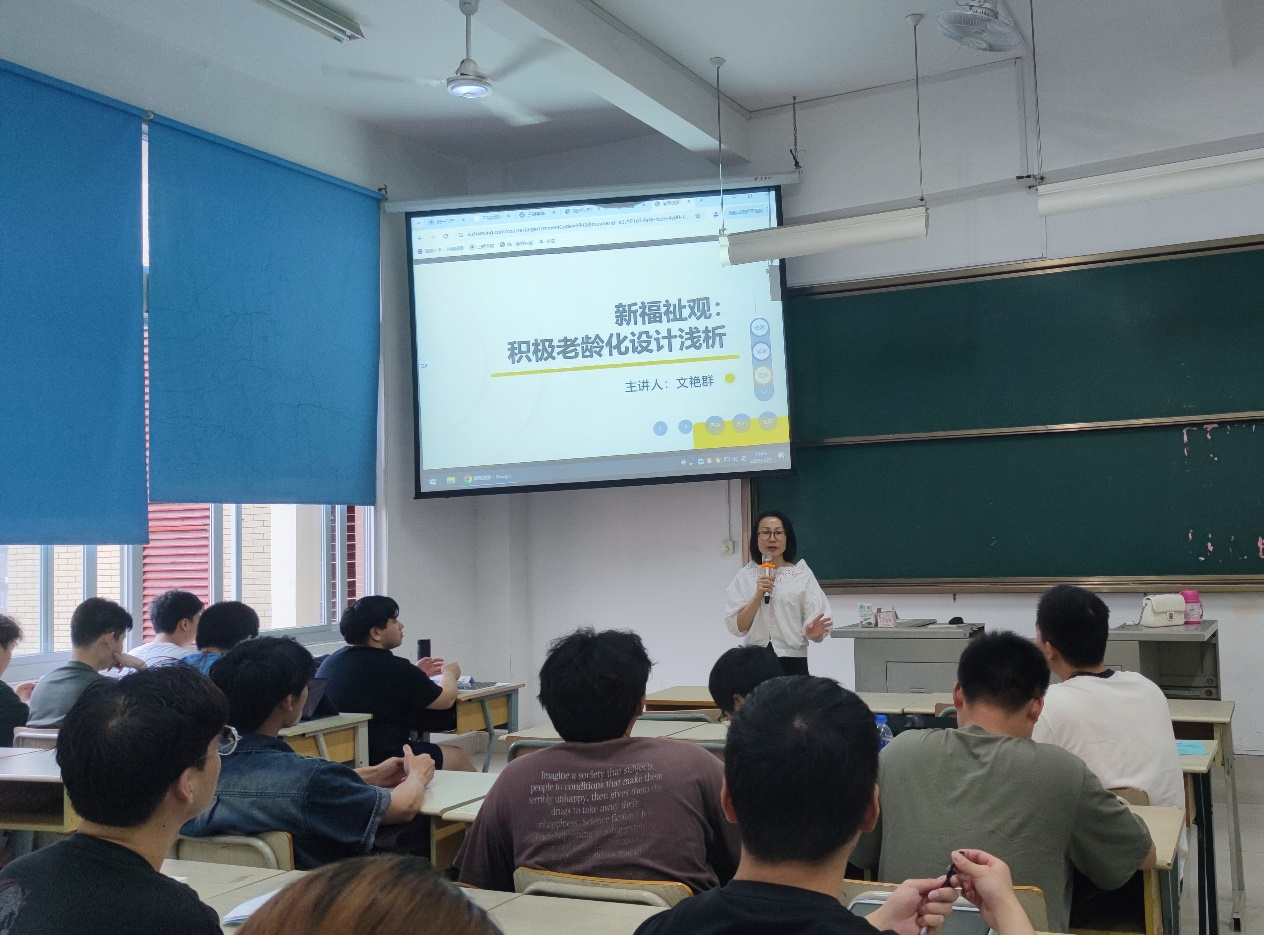 5月23日,艺术与设计学院在厚德楼503教室举办《新福祉观:积极老龄化设计浅析》专题讲座。讲座由艺术与设计学院文艳群副教授主讲,产品设计专业学生参加。