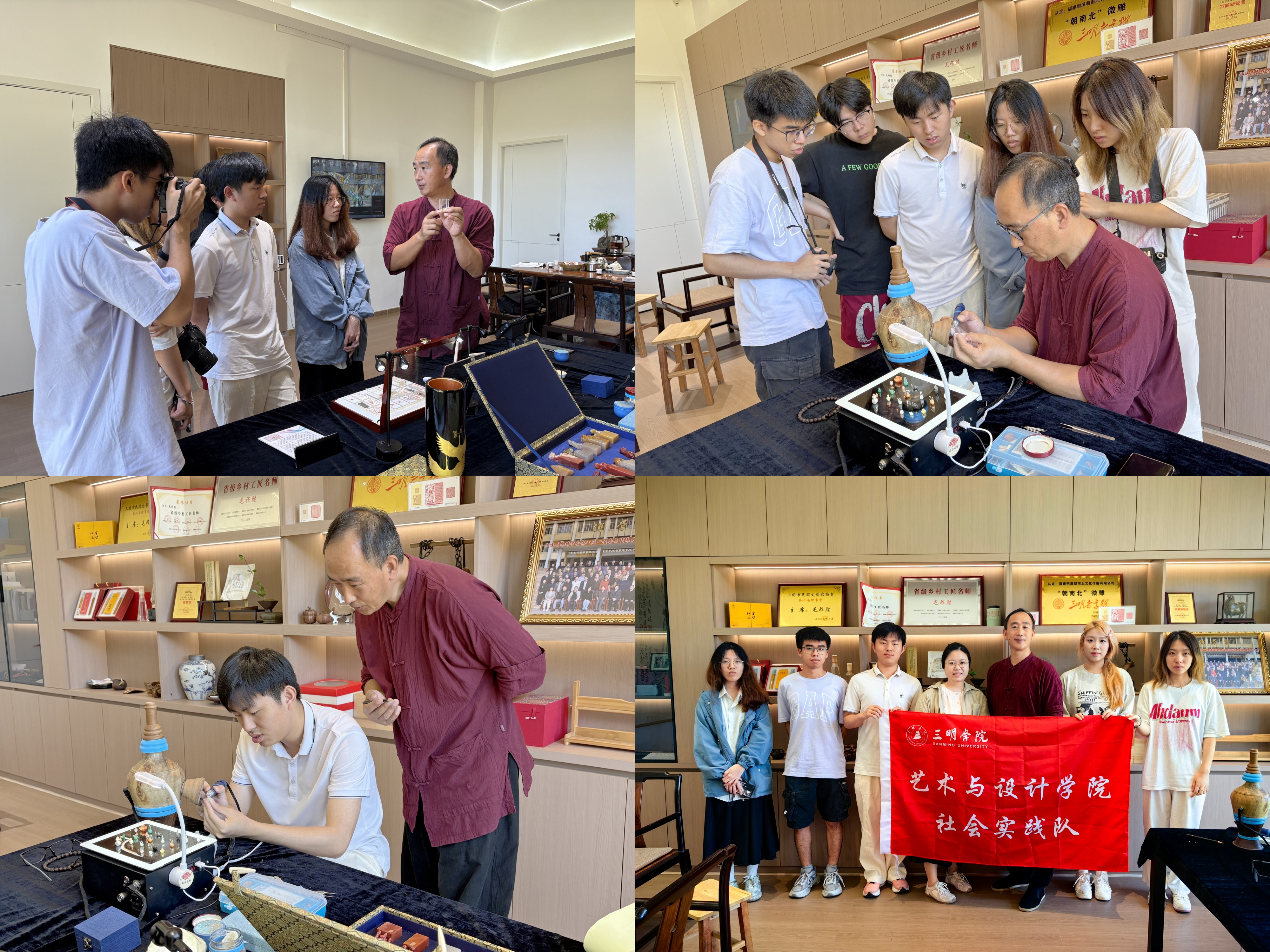 在三元区小蕉村,指尖星河数字队的师生们开展了一场别开生面的非遗保护实践。在福建省非物质文化遗产微雕技艺代表性传承人毛祚胜的工作室里,队员们通过口述史访谈、技艺观摩和实操体验,全方位记录微雕艺术的创作过程。从选材、打坯到精雕细琢,队员们在毫厘之间感受着传统工艺的精妙绝伦。此次实践加深了队员们对非遗文化与传统工艺的理解,积累了数字化保护经验。未来,实践队将继续探索非遗技艺数字化保护与创新路径,为传统工艺活态传承提供新思路。