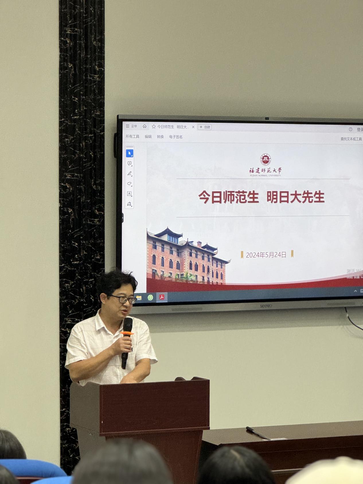 5月24日下午,教育与音乐学院特邀福建师范大学教师教育学院院长吴文哲教授为我院师生开展《今日师范生 明日大先生》的专题学术讲座。