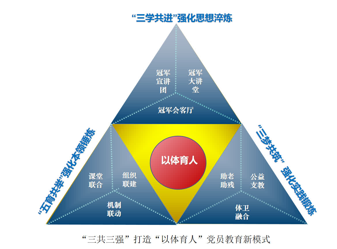 突出发挥体育筑基作用,强化课堂联合、组织联建、机制联动,推动“五育并举”融入党员教育管理中。