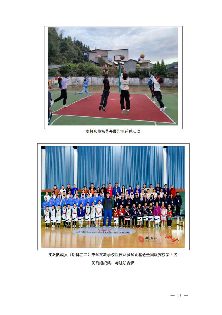 (2)公益支教筑“快乐梦”。支部党员团队发挥专业优势连续3年开展“四点半”阳光体育课堂和姚基金公益支教,打造“专项冠军”上体育课的特色品牌。3年来为全省147所乡村小学31638名小学生提供体育支教服务,以实际行动助力乡村学校体育事业发展,巩固乡村振兴成果。