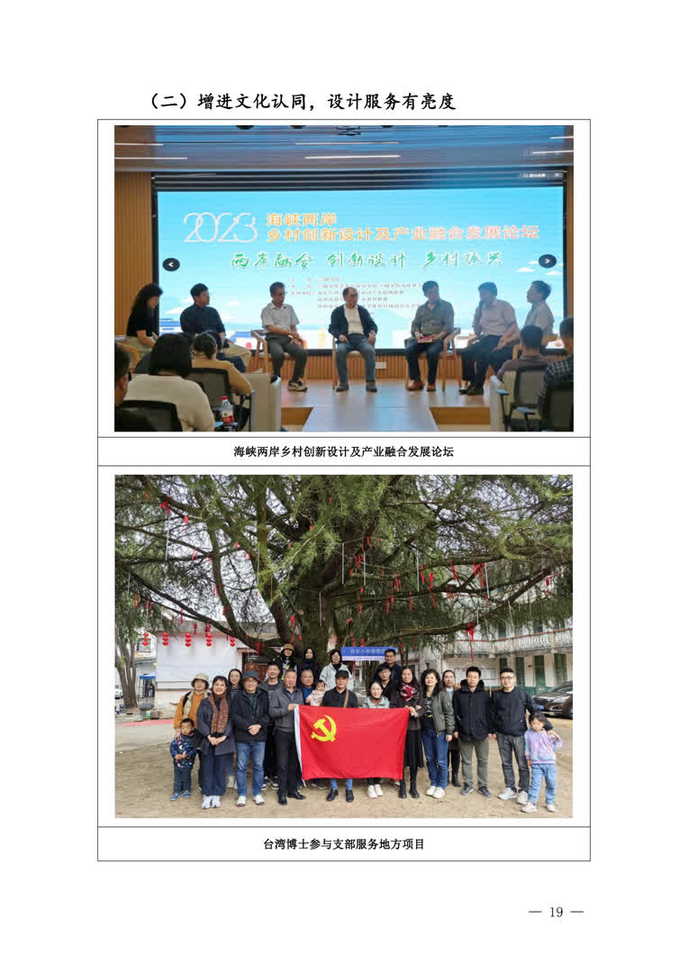 2.增进文化认同,设计服务有亮度。支部教师将本土特色资源引入课堂,促进对乡土文化、两岸同根同源的认同,也把沉浸式、参与式的教育理念运用到专业教学中,先后在三元、泰宁、明溪、清流等7县21村,开展了近千人次的服务设计,创立的“福禄万代”品牌,帮助当地村民实现家庭人均纯收入由2015年的3500元增至现在的1.6万元。支部的设计服务成果被地方政府采纳与实施,《人民日报》以《乡村振兴有新意 人民墙绘画新篇》为题对支部服务地方成效进行专题报道。《中国青年报》《中国教育报》《福建日报》等主流媒体报道支部赋能乡村振兴的做法和经验超20次。