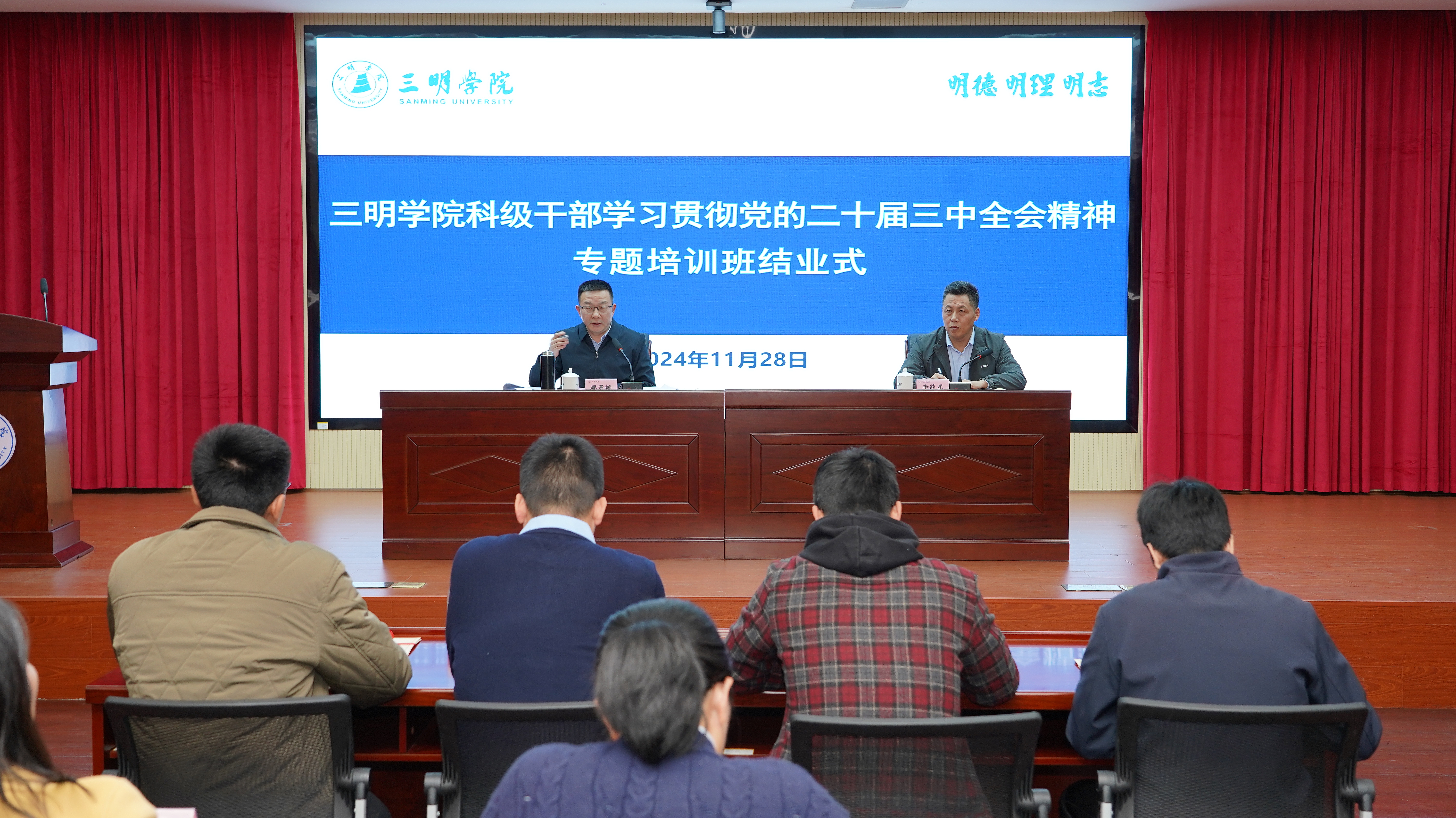 11月28日,yl6809永利官网科级干部学习贯彻党的二十届三中全会精神专题培训班结业式在学术中心第三会议室举行,校党委副书记、党校校长廖景榕出席并讲话,校党委副书记、组织部部长李莉星主持会议。