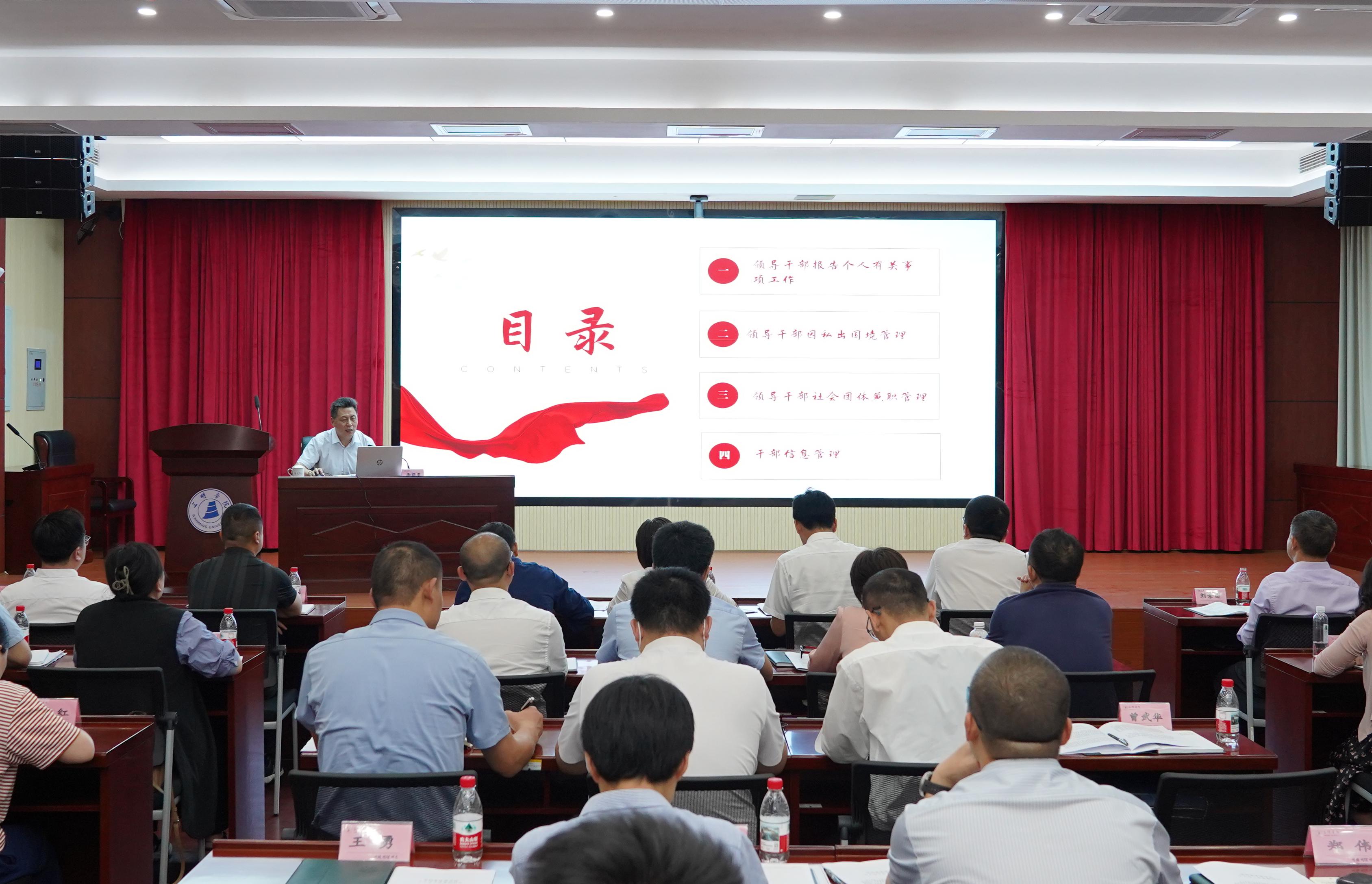 开班式后,校党委副书记、组织部部长李莉星为培训班作《深刻理解把握和坚决贯彻落实民主集中制》、《干部日常监督管理有关事项培训》首场专题辅导。